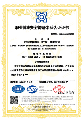 公司按照ISO9001:2015、ISO14001:2015、ISO45001:2018管理體系標(biāo)準(zhǔn),食品及危險(xiǎn)品全國工業(yè)產(chǎn)品生產(chǎn)許可證,出口危包UN代碼許可證等要求建立了獨(dú)特的管理體系。